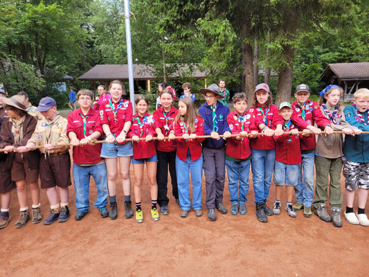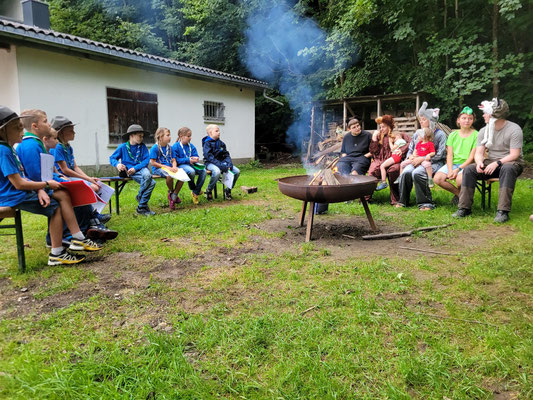 Im Anschluss daran mussten die Wichtel und Wölflinge während einer Fackelwanderung verschiedene Aufgaben lösen, ehe man zu später Stunde erschöpft in die Schlafsäcke fiel.