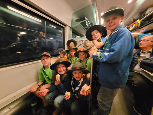 Viele freudige und aufgeregte Augen der Wichtel und Wölflinge leuchteten, wie es dann endlich soweit war und unser Zug losfuhr. Nach einer mehrstündigen Anreise konnten wir nach einem kurzen