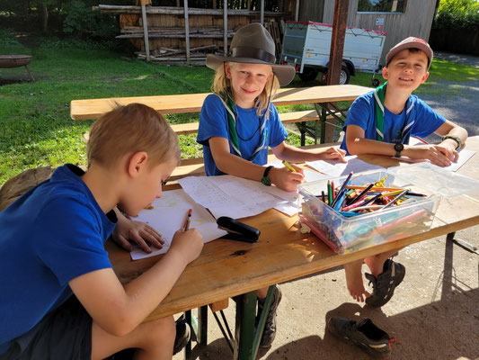 Während des Sommerlagers mussten die Kids viele verschiedene kniffelige Aufgaben lösen und hatten die Kinder die Möglichkeit verschiedene Pfadfinderabzeichen zu machen, sich im eigens